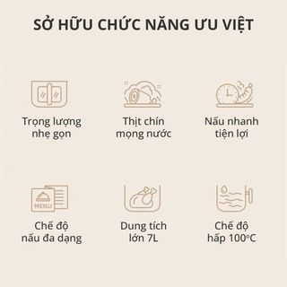 Sử dụng tiện lợi, đa dạng chức năng nấu, chiên nướng, hấp thực phẩm,…