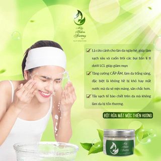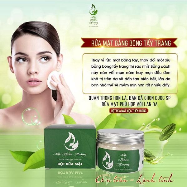 Sử dụng những loại sản phẩm có nguồn gốc 100% từ thiên nhiên hiện đang là xu hướng làm đẹp hiện nay. Trong đó, sử dụng loại bột rửa mặt Mộc Thiên Hương thiên nhiên đang là xu hướng được yêu thích số 1 bởi vì sản phẩm giúp đem lại làn da sáng mịn hồng hào tự nhiên. Bột rửa mặt Mộc Thiên Hương là mỹ phẩm làm từ 100% thảo dược thiên nhiên, nó có dạng bột, và thơm mùi thuốc bắc, đặc biệt là không tạo bọt. Công dụng làm sạch nhờn, bụi bẩn, ngăn ngừa mụn, trắng da giống như sữa rửa mặt mà chúng ta vẫn hay sử dụng hàng ngày. Giá thành phải chăng, và lại còn phù hợp với nhiều loại da. Sản phẩm đang hot nhất hiện nay và được rất nhiều người sử dụng.
