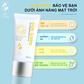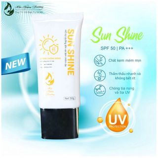 Kem chống nắng 50gr Sun Shine được kết giữa công thức độc đáo và công nghệ hiện đại, cho ra một sản phẩm kem mềm mịn, thẩm thấu nhanh và tạo ra một lớp bảo vệ da hiệu quả.