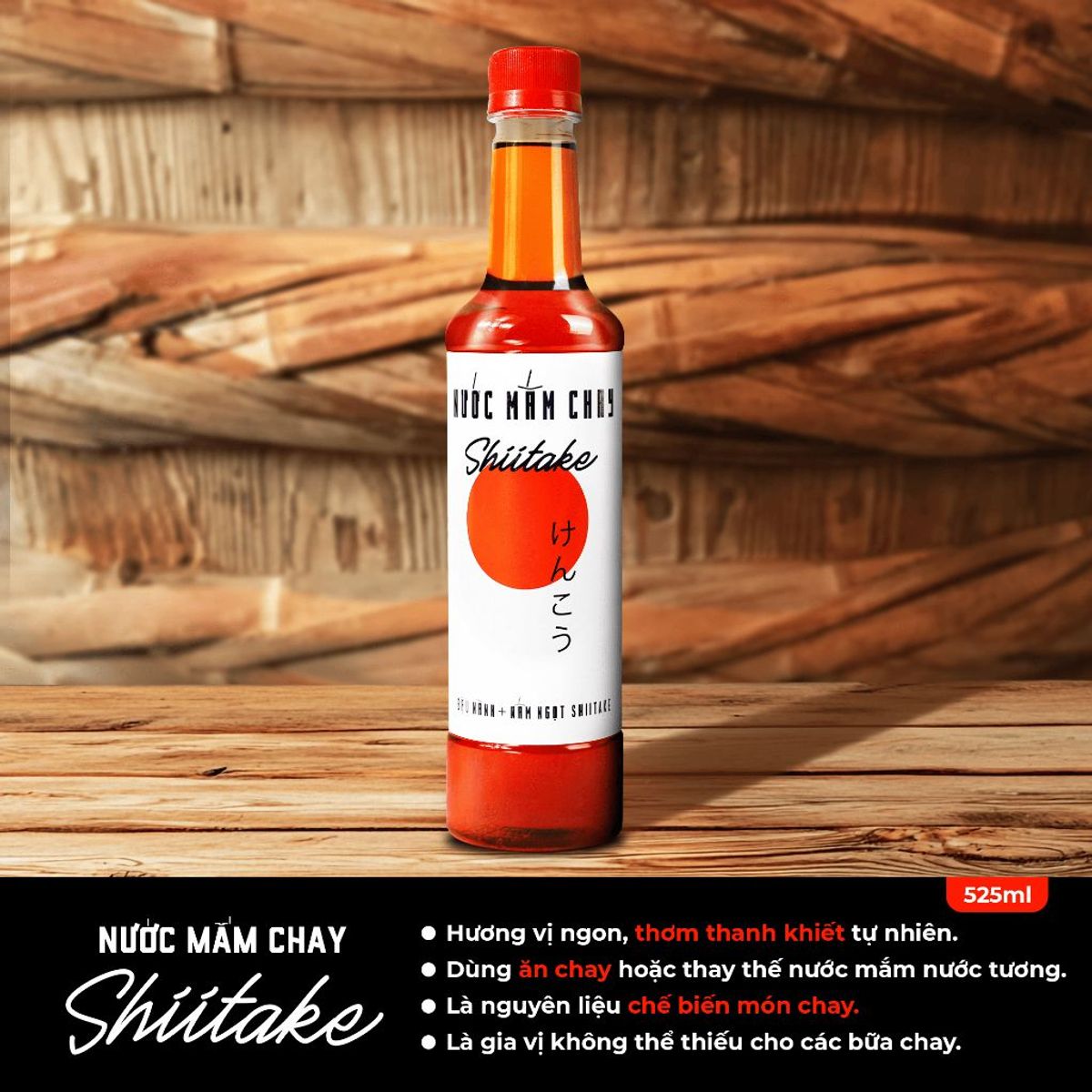 - Nước mắm chay Shiitake nhãn trắng chai nhựa 525ml có thành phần nấm ngọt Shiitake và đậu nành Nhật Bản, dùng ăn chay hoặc thay thế nước mắm nước tương. Nấm ngọt Shiitake có trong bữa ăn hàng ngày và là bí quyết sức khỏe của người Nhật.
