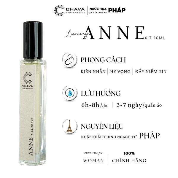 - Tên sản phẩm: NƯỚC HOA MINI LUXURY ANNE 10ML PHONG CÁCH XỊT - CHAVA