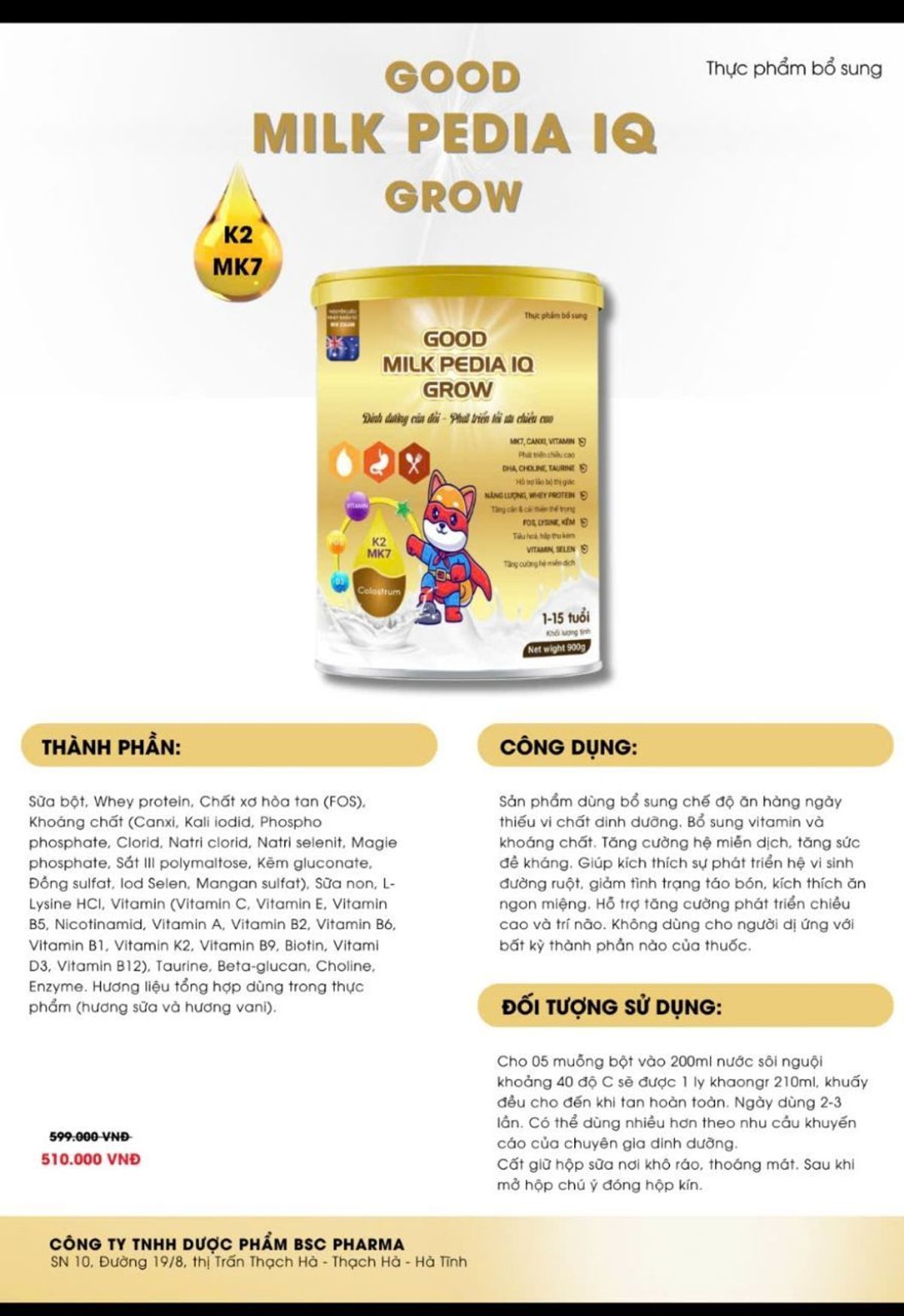 Vitamin, selen, sữa non, IGG, HMO, DHA, LYSINE,..
