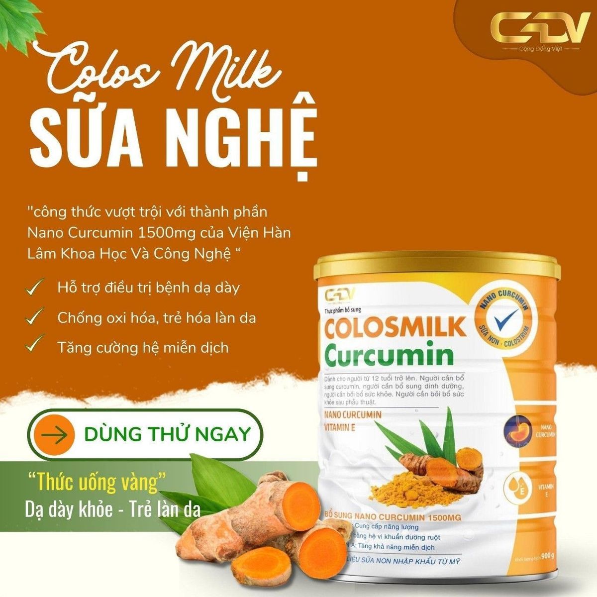Bạn :Không cần phải mua Tinh bột nghệ. Chẳng cần phải mua thêm sữa. Không cần phải hấp nghệ tươi. Bạn :Chỉ cần một cốc nước ấm thì đã có ngay cốc sữa nghệ với đầy đủ dưỡng chất rồi. Nhanh gọn và tiện lợi phải không ạ.còn có thể làm mặt nạ dinh dưỡng cho làn da nữa. Sữa Nghệ COLOS Milk Curcumin.Trong nghệ chứa Curcumin.Là hoạt chất quý có tác dụng chính đã được khoa học chứng minh cực kỳ tốt cho Da đẹp, Dáng thon, Dạ dày, Phụ nữ sau sinh, Người mới phẫu thuật, ốm dậy, Ung thư, Tăng cường sức khỏe.... Có hàm lượng Curcumin hiệu quả gấp 10 lần Tinh bột nghệ thông thường. Ib mình tư vấn thêm công dụng tuyệt vời của dòng sản phẩm này nhé! Luôn để giá tận gốc cho mẹ nào nhiệt tình,dễ tính...am hiểu