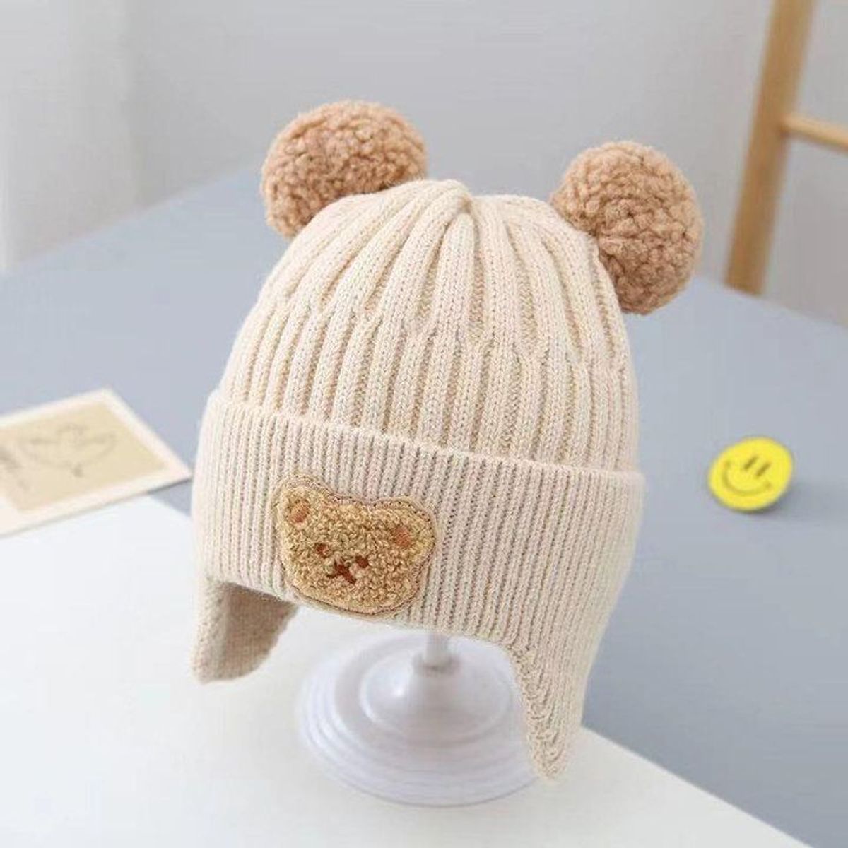 Mũ len được thiết kế hình gấu 2 tai bông dễ thương