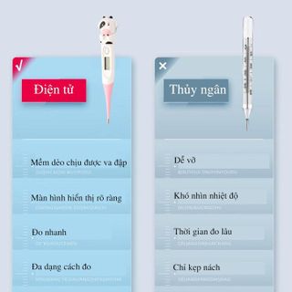 Cho kết quả đo chính xác, vệ sinh, an toàn, đặc biệt hình dáng rất thân thiện với trẻ em.