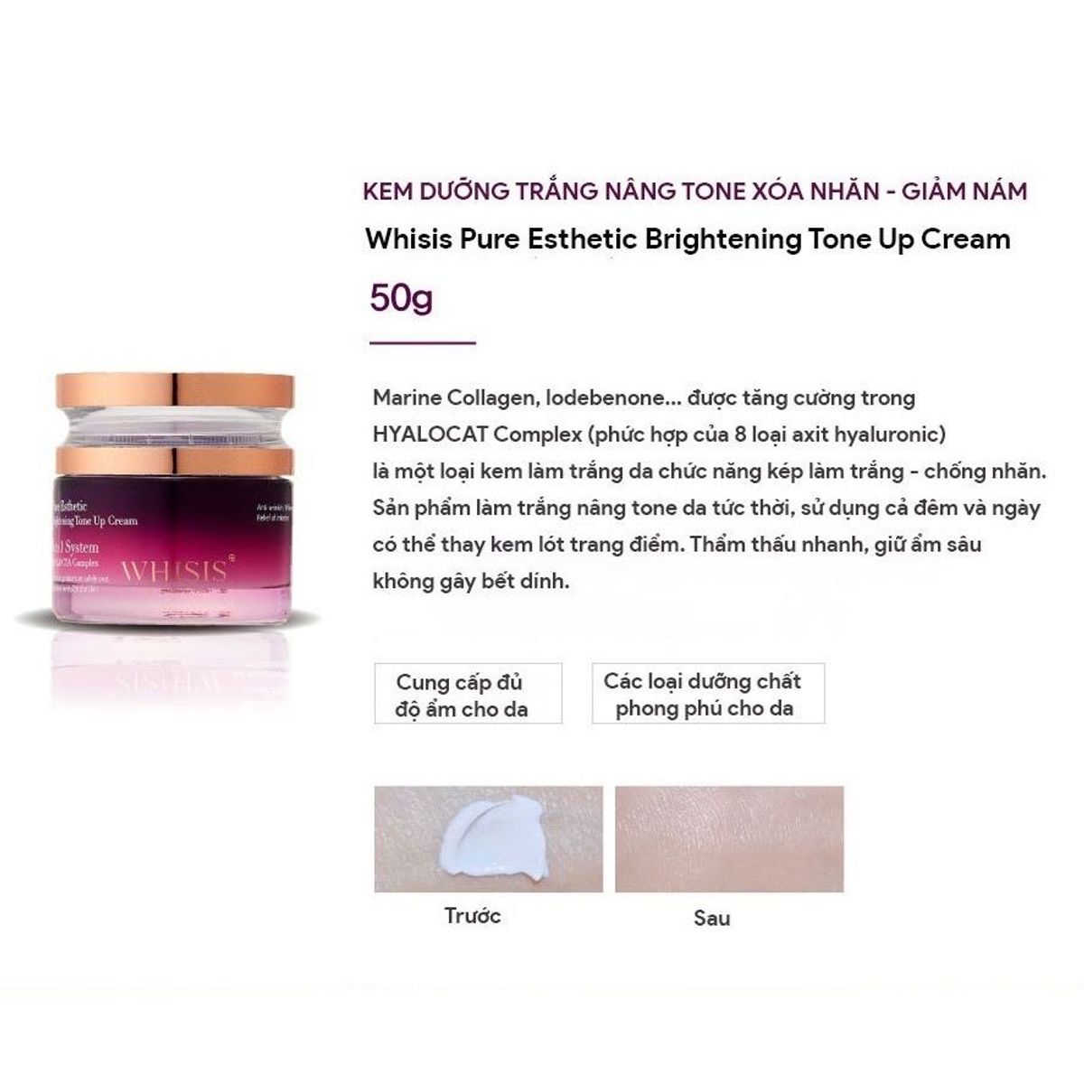 + Tên: Kem Dưỡng Ẩm Trắng Da 6 in 1 WHISIS Pure Esthetic Brightening Tone Up Cream Cấp Ẩm, Nâng Tone, Giảm Nám, Trẻ Hoá Da 50g
