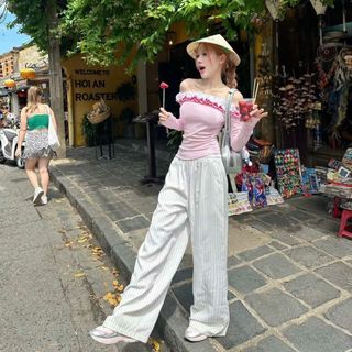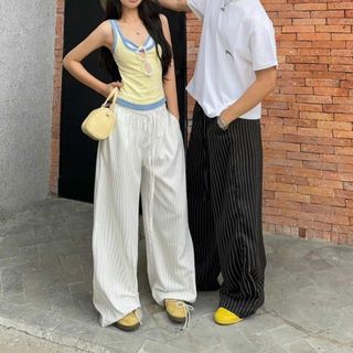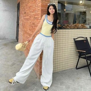 Quần ống rộng có lưng thun , dây luồng mặc thoải mái cho cả nam và nữ chất kate sọc có túi, ống rộng