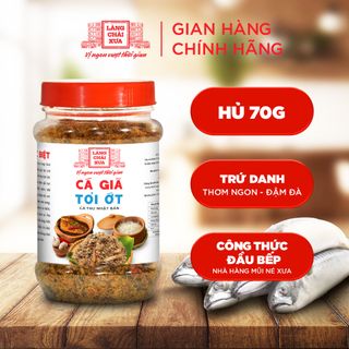- Cá giã tỏi ớt loại đặc biệt của Làng Chài Xưa - món cá thu giã tay trứ danh nay đã có mặt trong hủ 90g tiện lợi. Từng con cá thu được giã tay cùng tỏi ớt tươi, thấm đẫm mắm nhỉ nguyên chất, tạo nên hương vị đậm đà, cay nồng khó quên.