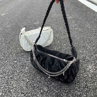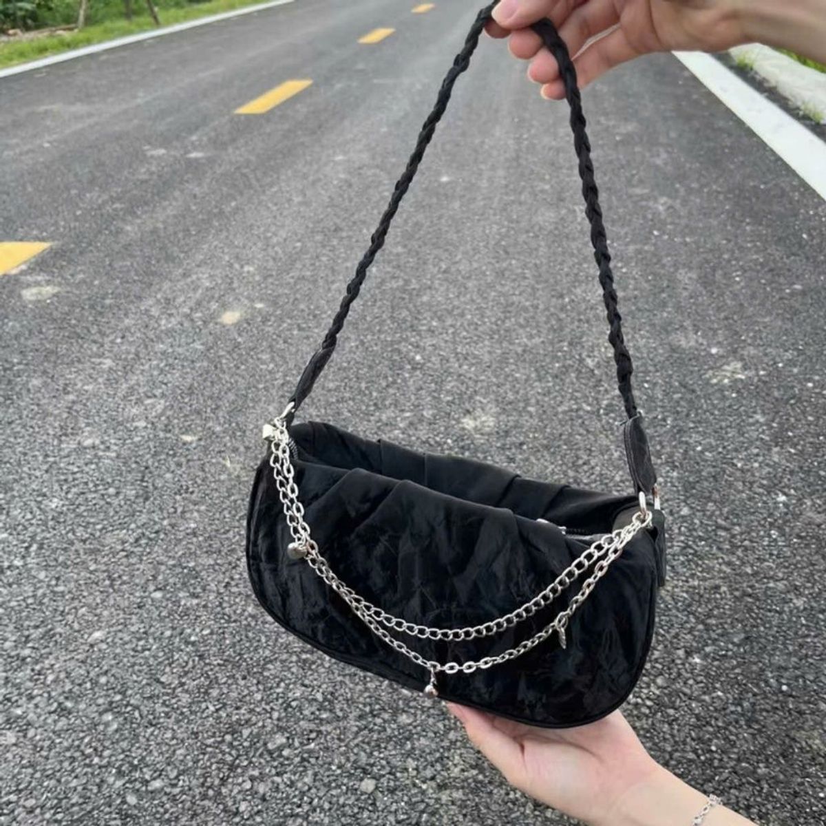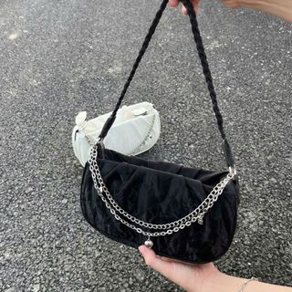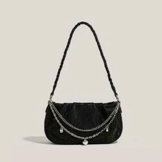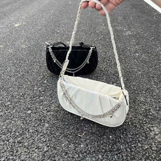 Thiết kế dáng kẹp nách, đeo chéo hoặc xách tay đều cực tôn dáng, phối kèm dây xích bạc nổi bật, tạo điểm nhấn kiêu kỳ và cuốn hút ✨