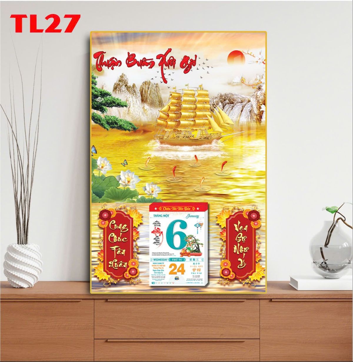 Kích Thước: 40x60 cm – Tặng Kèm Bloc lịch 14.5x20.5 cm