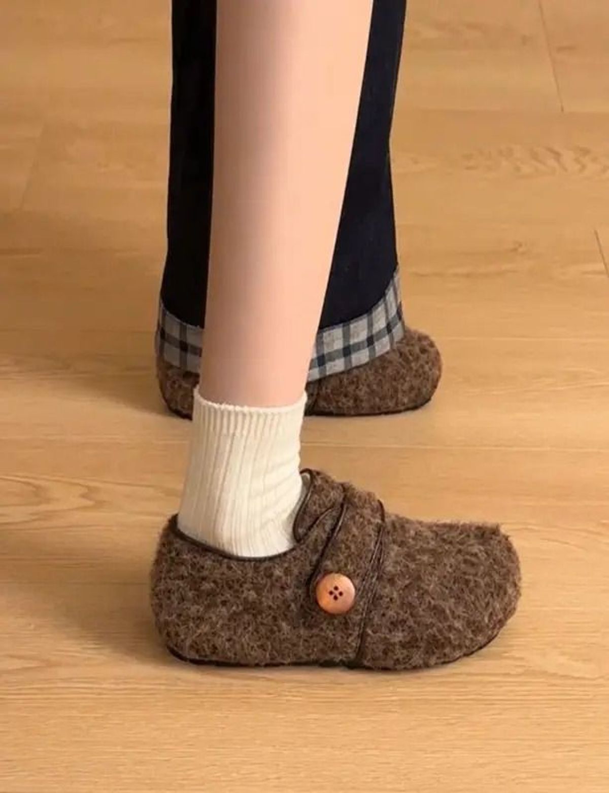 Thiết kế lông cừu ép dạ mềm ấm, phối khuy tinh tế, form giày xinh xắn dễ mang – phù hợp đi làm, đi chơi hay dạo phố nhẹ nhàng.