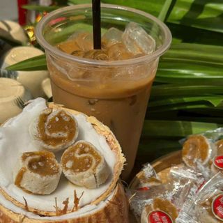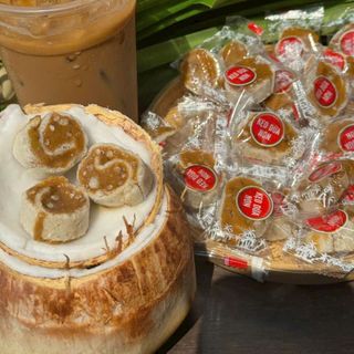 Kẹo dừa non cuộn cà phê với lớp dừa non mềm dẻo, béo nhẹ tự nhiên, kết hợp hương cà phê rang thơm dịu.