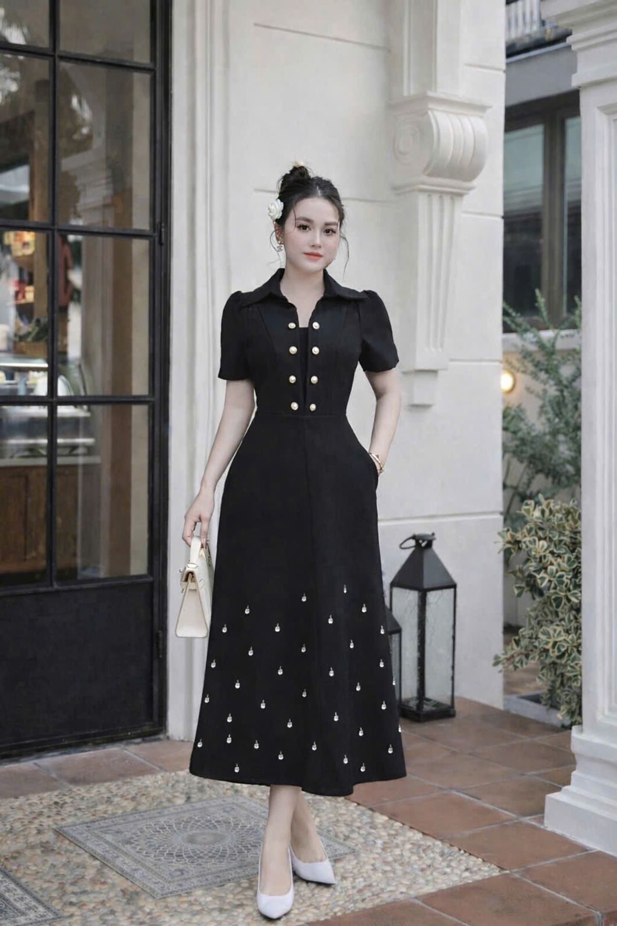Đầm trung niên thiết kế dáng xoè dự tiệc cotton lạnh đính đá cao cấp, mềm mại, sang trong,thanh lịch bigsize B8